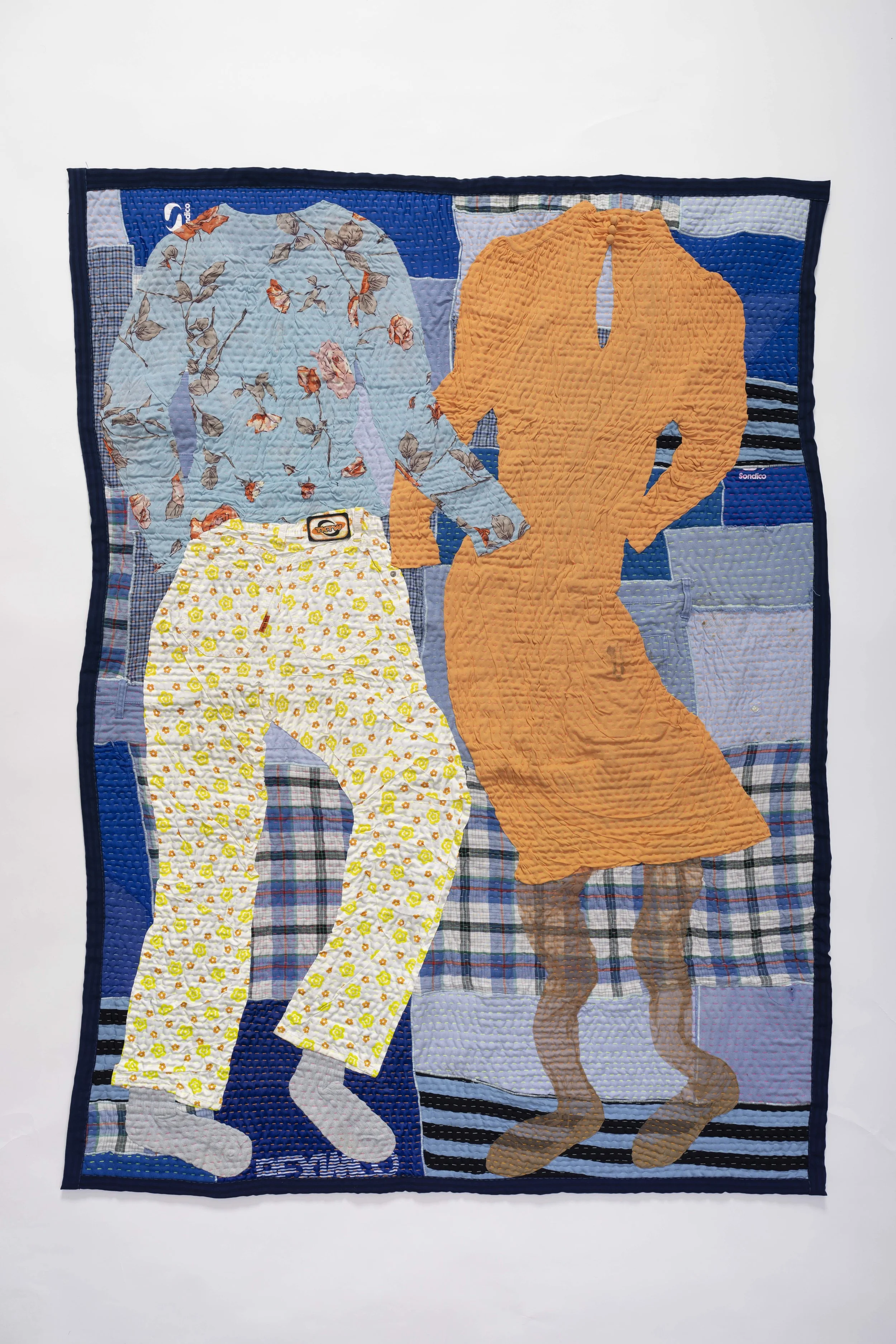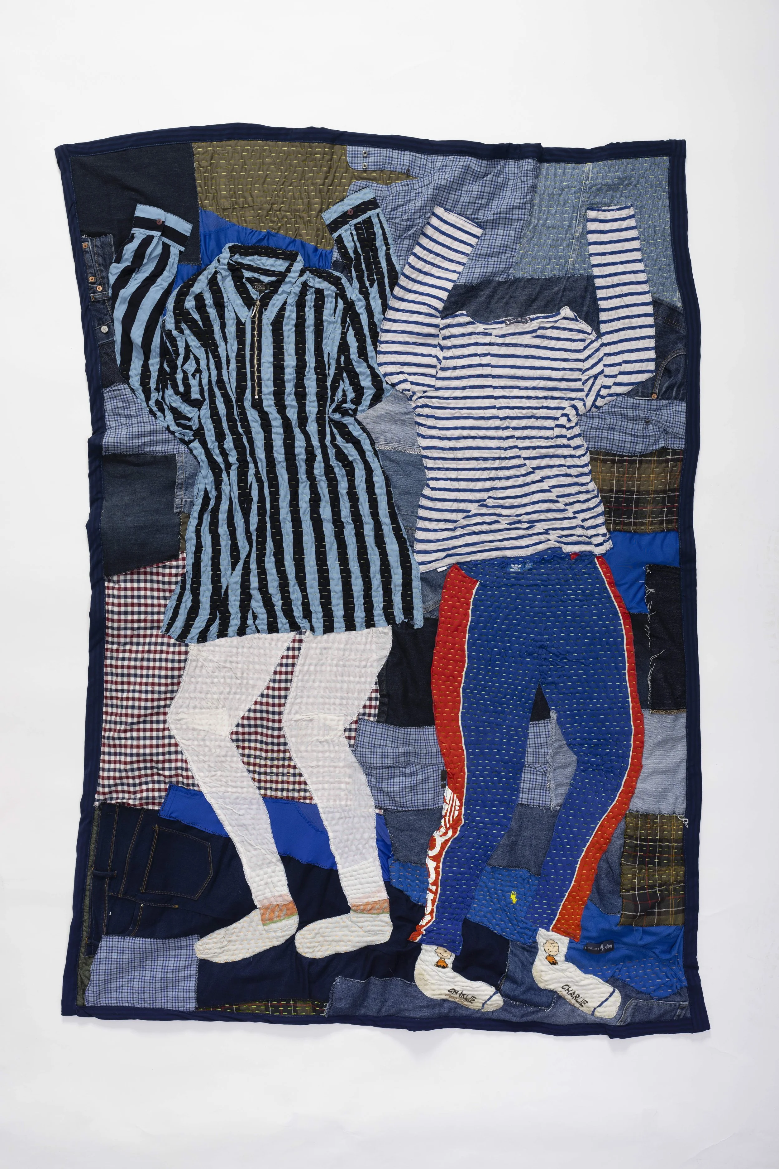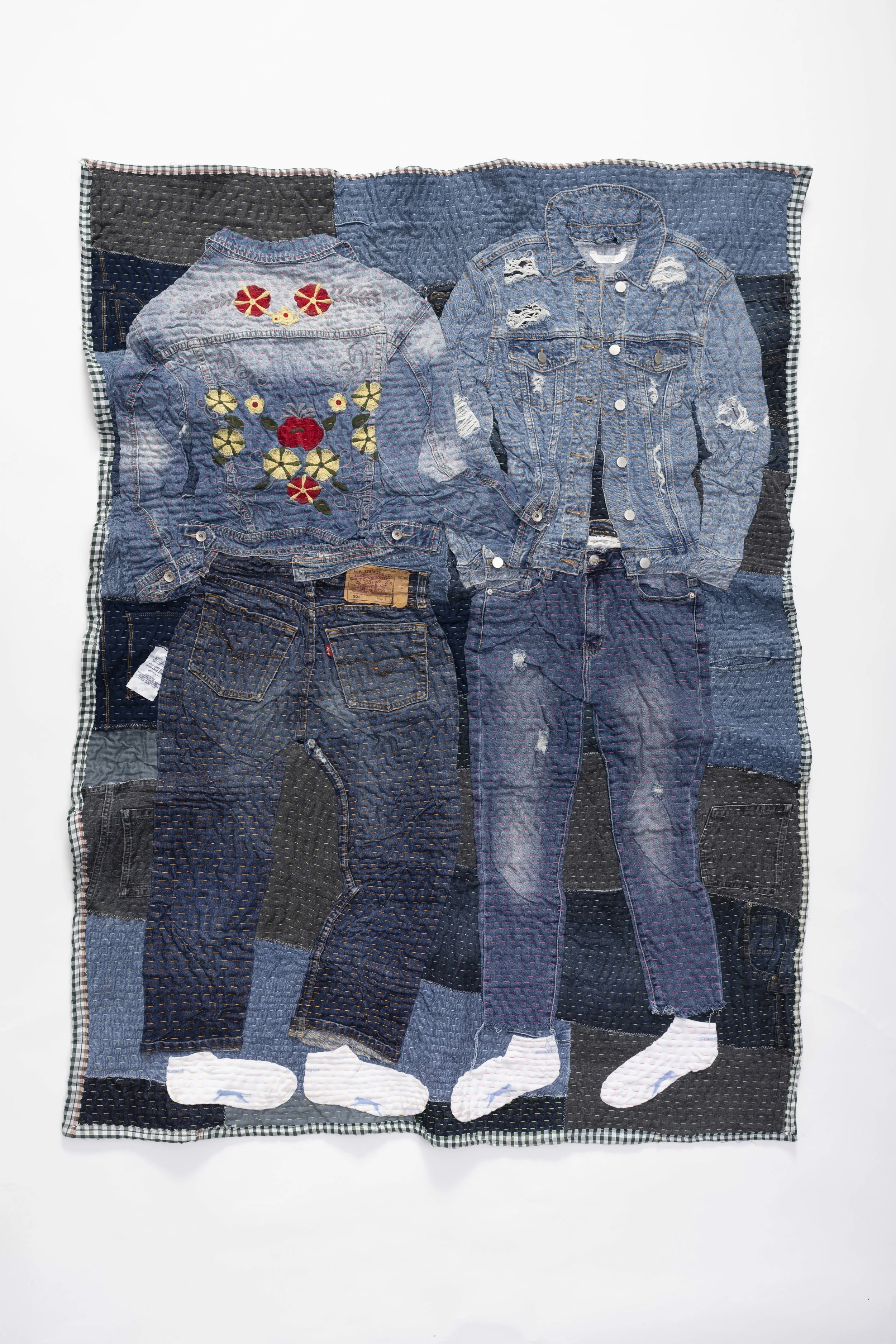 Clothes, fabric, mother-in-law’s jeans, slazenger socks. 114 x 151 cm (2023)